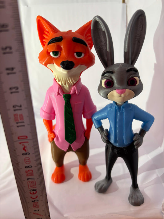Zootopia Nick Wilde & Judy Hopps 3D Baskı Dekoratif Figür Seti – El Yapımı Koleksiyon