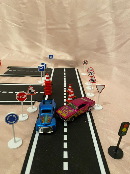 Mini Trafik Eğitim Seti Asfalt - Trafik Levhaları - Duba Çocuk Eğitici Seti Sürpriz araba hediyeli