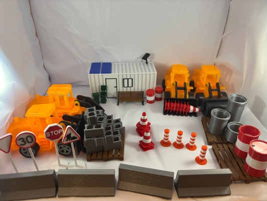 Mini Yol Çalışması Şantiye Seti – Trafik Konileri, İş Makineleri ve Levhalar – Diorama & Oyuncak Set