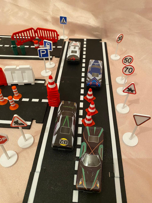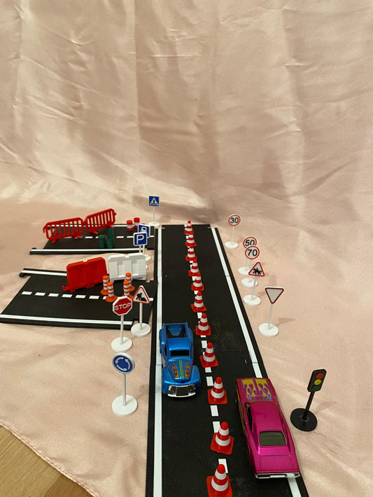 Mini Trafik Eğitim Seti Asfalt - Trafik Levhaları - Duba Çocuk Eğitici Seti Sürpriz araba hediyeli
